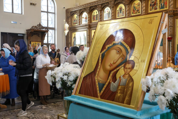 Каждый молитвенник нёс с собой свои личные домашние святыни. Но главной святыней Крестного хода стал большой образ Казанской иконы Божией Матери написанный специально для Андреевского храма семьёй мецената Андрея Захарченко.