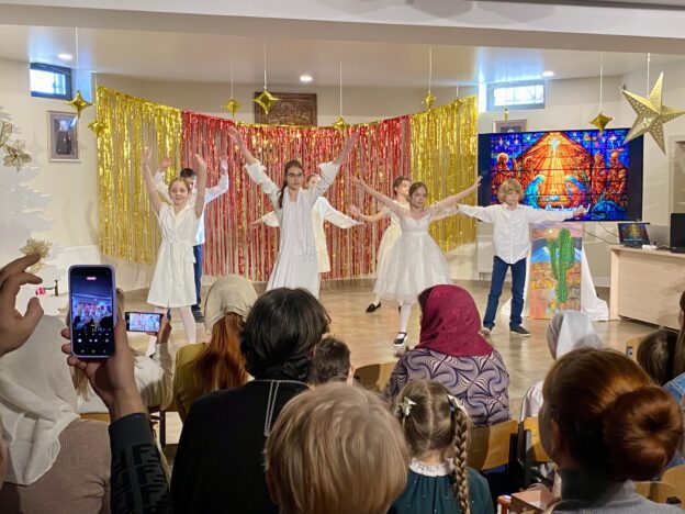 После праздничной Божественной литургии состоялся Рождественский концерт, организованный силами преподавателей, родителей и воспитанников Воскресной школы.