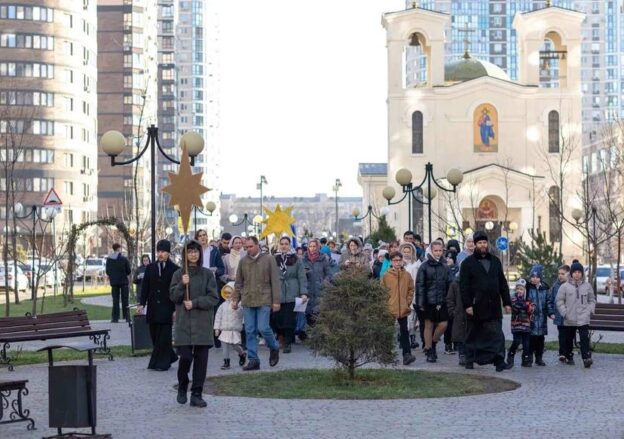 7 января 2026 года в день праздника Рождества Христова прихожане храма апостола Андрея Первозванного г. Краснодара с песнопениями и колядками прославили Рождшегося Христа по микрорайону священника Кирилла Россинского.